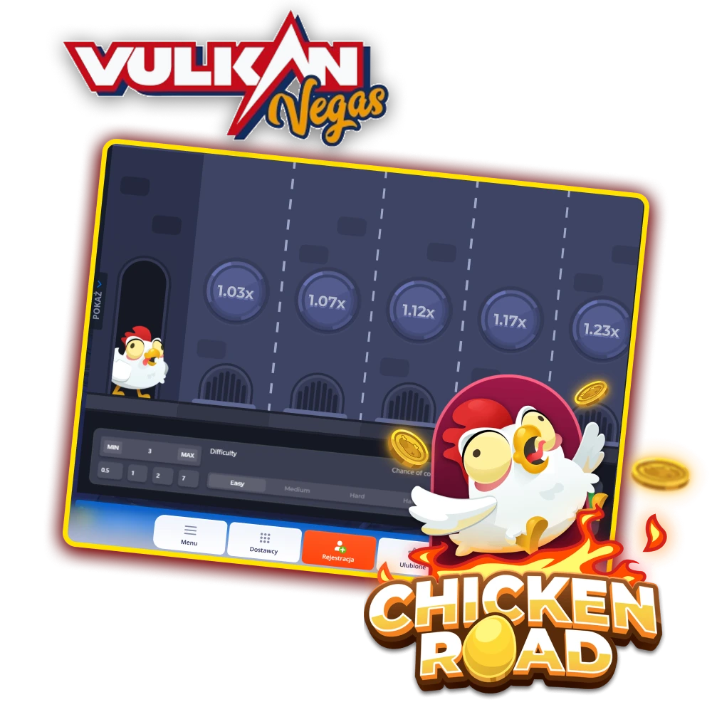 Chicken Road to dynamiczna gra hazardowa online, w której obstawiasz, jak daleko dotrze kura, omijając przeszkody na drodze. W Vulkan Vegas zagrasz o realne pieniądze, korzystając z bonusu powitalnego do 6 300 PLN i 150 darmowych spinów, licencjonowanej platformy oraz polskich metod płatności, takich jak BLIK, Przelewy24 czy karty bankowe. Bezpieczne transakcje i szybka rejestracja dają solidne warunki do gry na pieniądze.